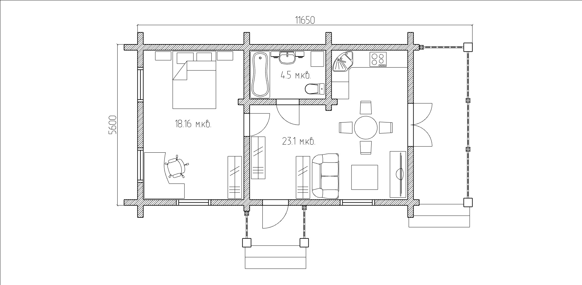 Чистая площадь: 45 м2
